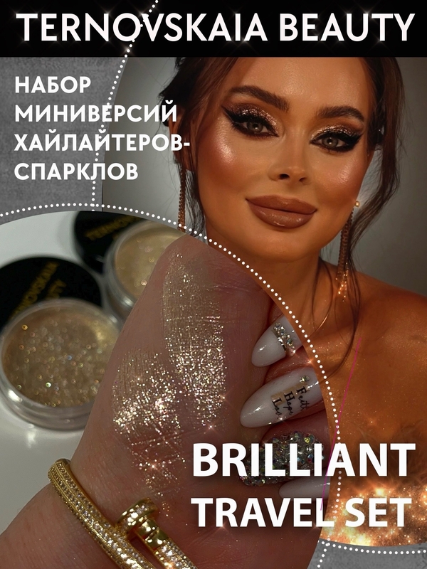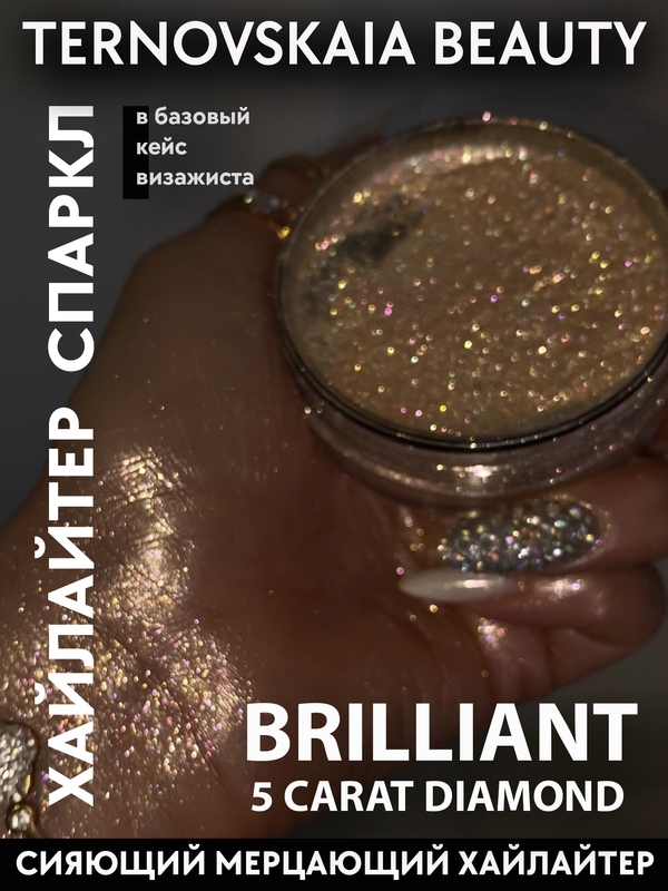 Набор Хайлайтеров-спарклов BRILLIANTS в оттенках 5 CARAT DIAMOND CHAMPAGNE для лица, глаз, тела и волос в дороржном формате